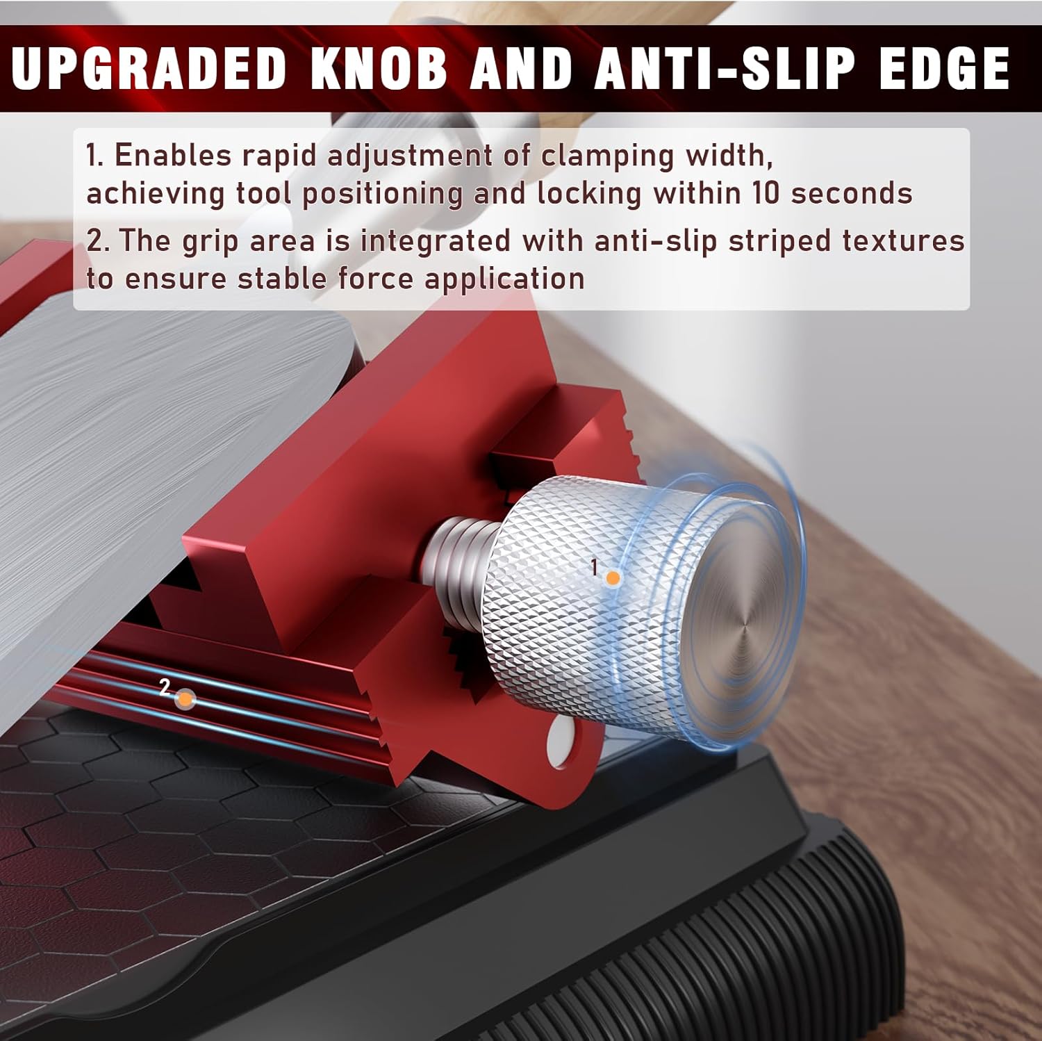 - UPGRADED ANTI-SLIP EDGE AND KNOB:The edge knob of this honing guide features an extended design, with the grip area integrated with anti-slip striped textures. When tightening the knob to secure the tool, the extended structure reduces operational effort, while the non-slip grip technology ensures stable force application. The dual-directional pressure locking mechanism, combined with our exclusive stable clamping structure, keeps the tool firmly fixed without loosening or offsetting.