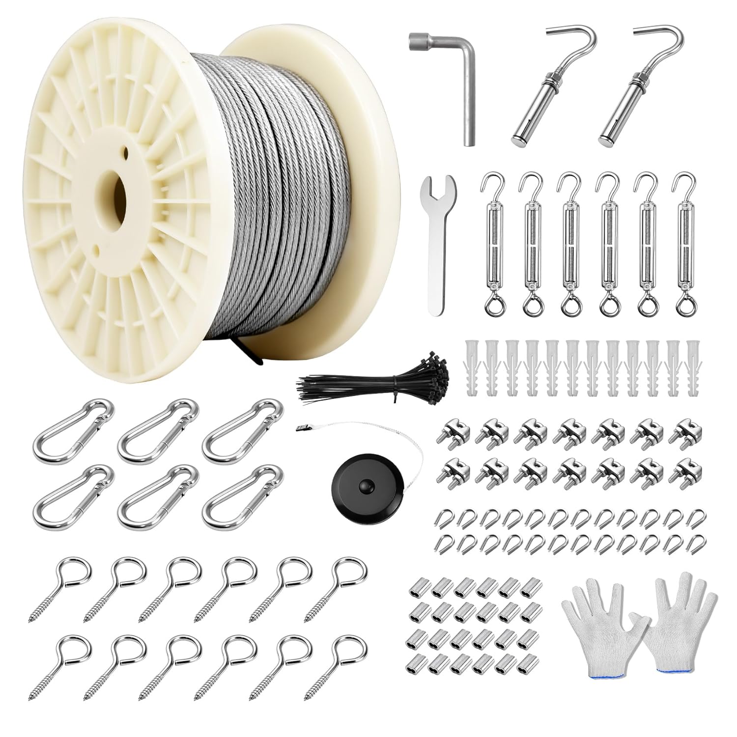 - Wide Application: The clothes line cable kit is perfectly suitable for tent fixing, garden plant pulling, garden light string hanging, fence reinforcement, painting hanging, and other needs. A string light wire hanging kit can also be used for deck railings, awnings, and romantic party decorations