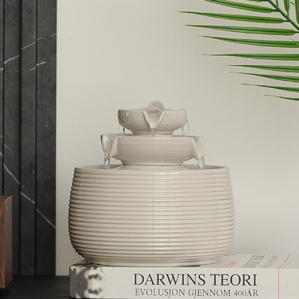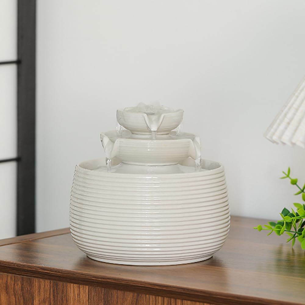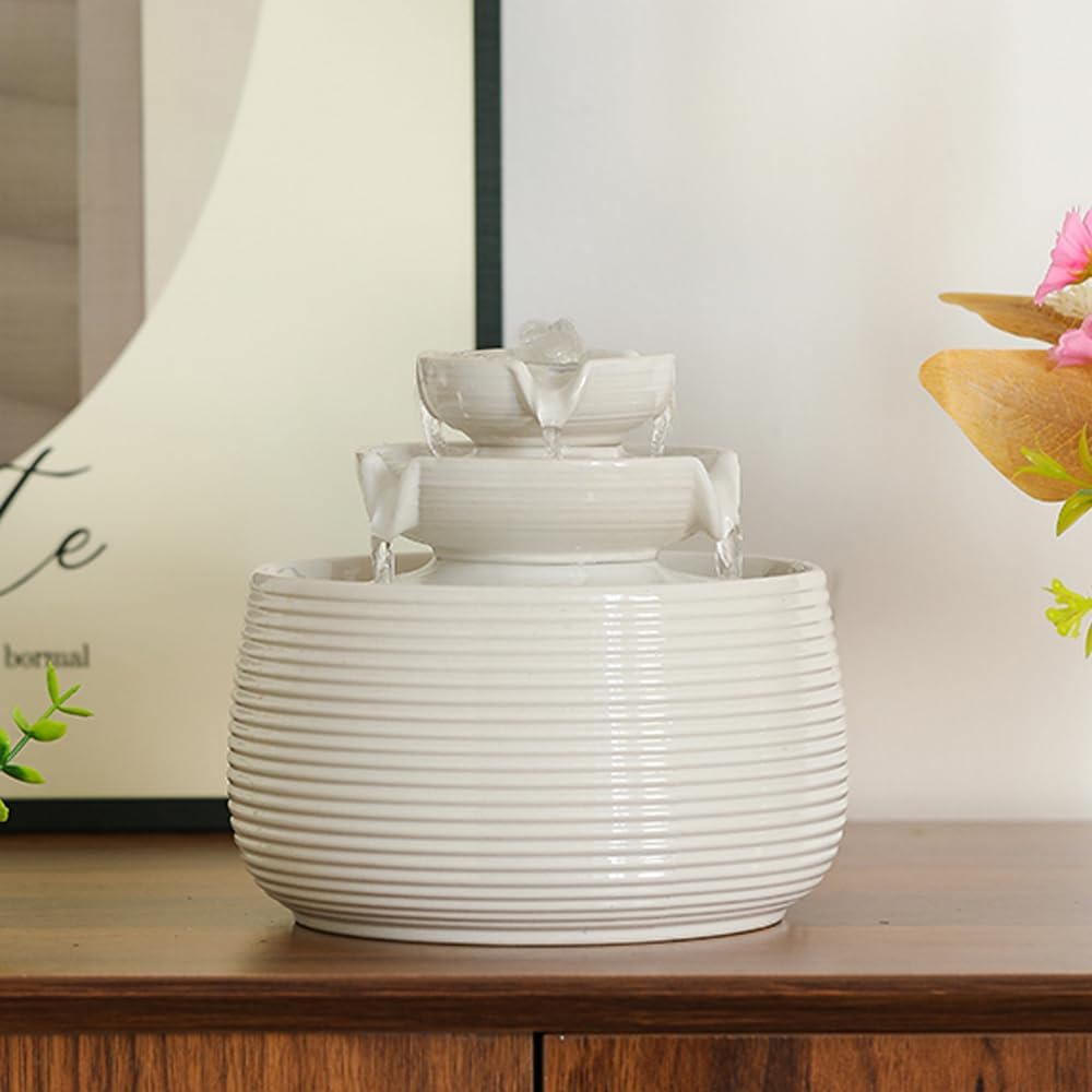 Outdoor and Indoor Water Feature Fountain Waterfall Tabletop Desktop mini Ceramic Garden Fountain (White A170)