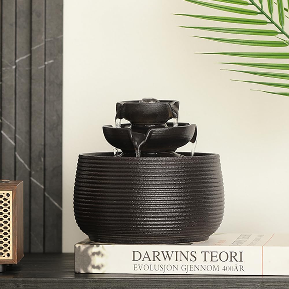 Outdoor and Indoor Water Feature Fountain Waterfall Tabletop Desktop mini Ceramic Garden Fountain (Black A172)