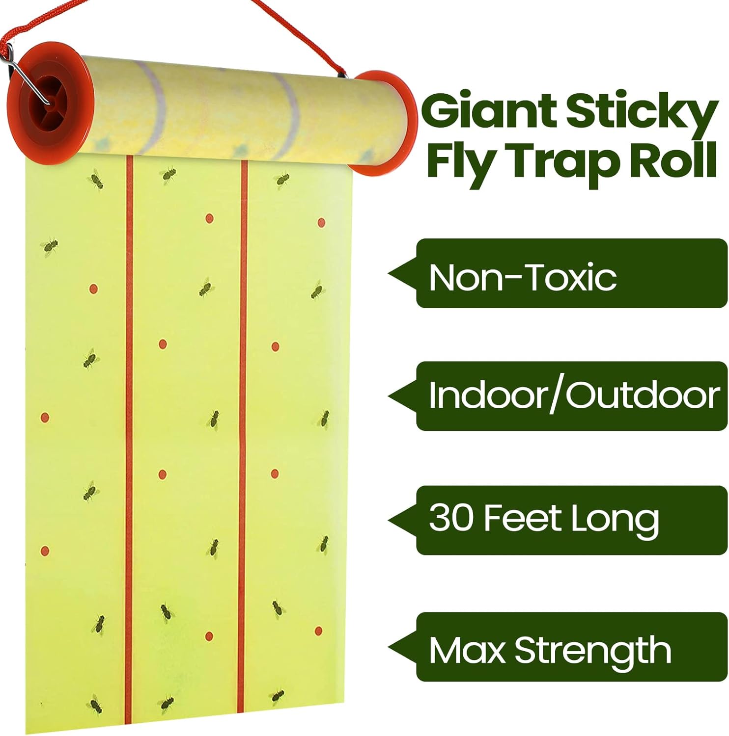 - Economical Fly Strips Roll Package: you will get 1 roll hanging fly tapes, which size is 30 feet long, 10 inch wide; Our one sided flying insect trap roll contains 3, 600 square inches of quality fly catching surface, keep your family protected and safe