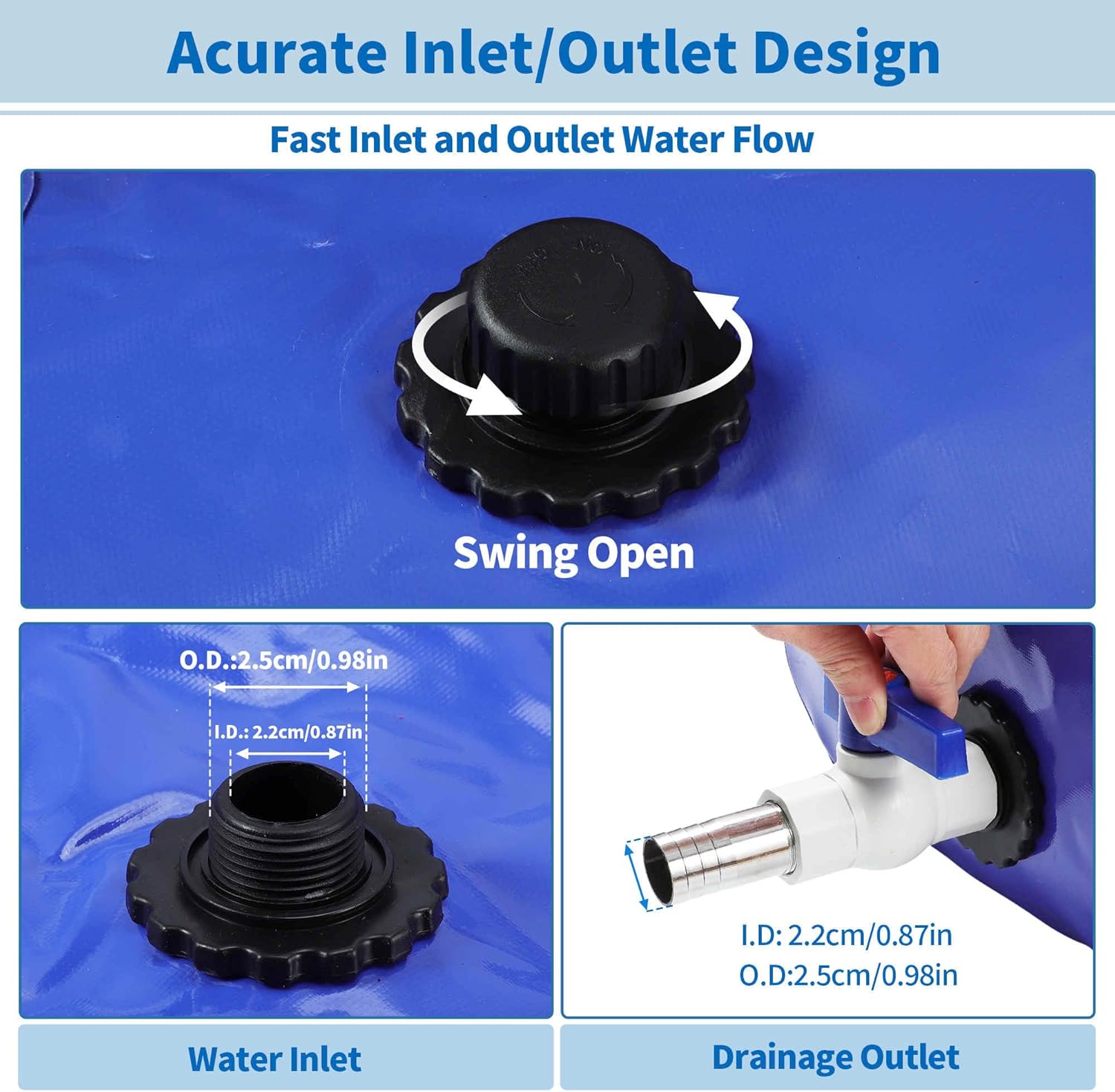 - [Kindly Desigh] There provided an water inlet and outlet on the water bladder, as well as a hose connector and water resistant tape for better using. Just connector the Hose Connector to the reservoir and you can fill the water bag on or use the storage water quickly.