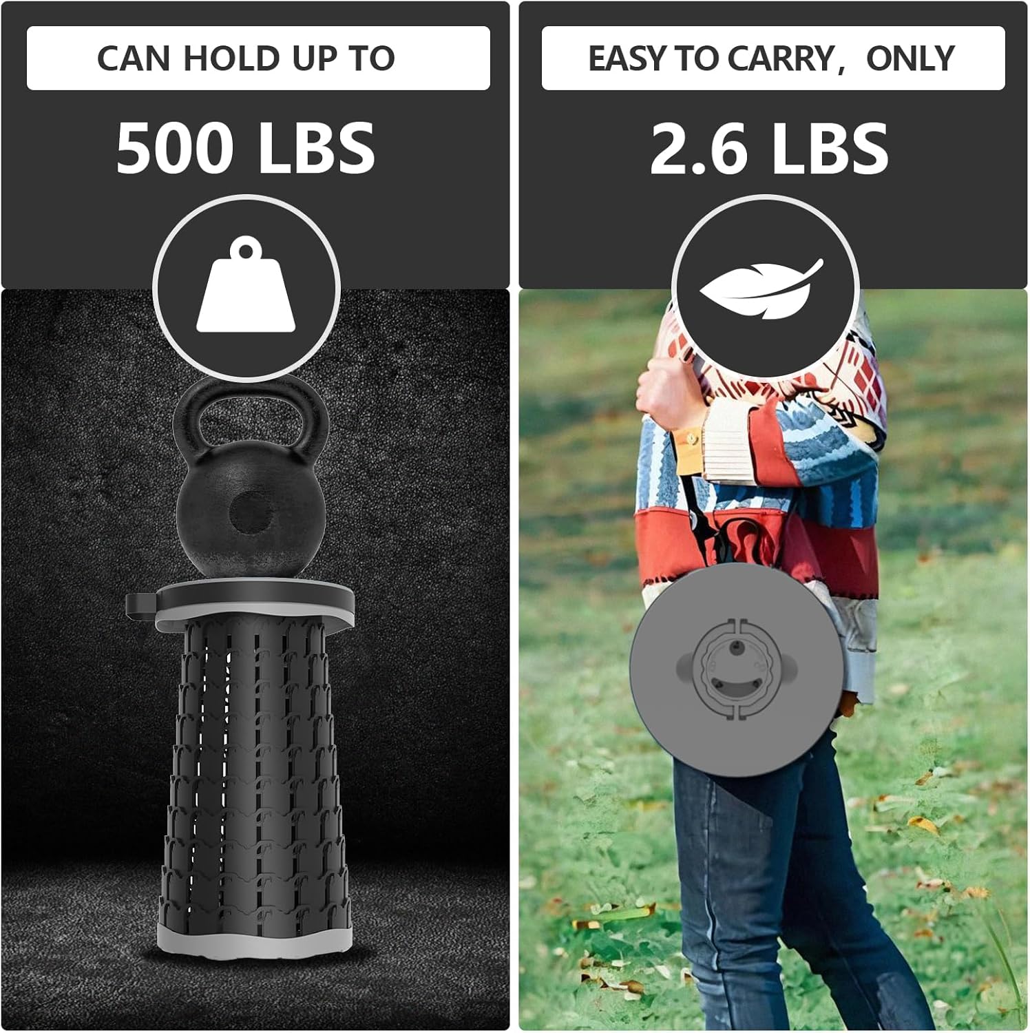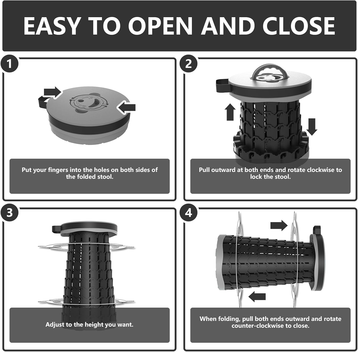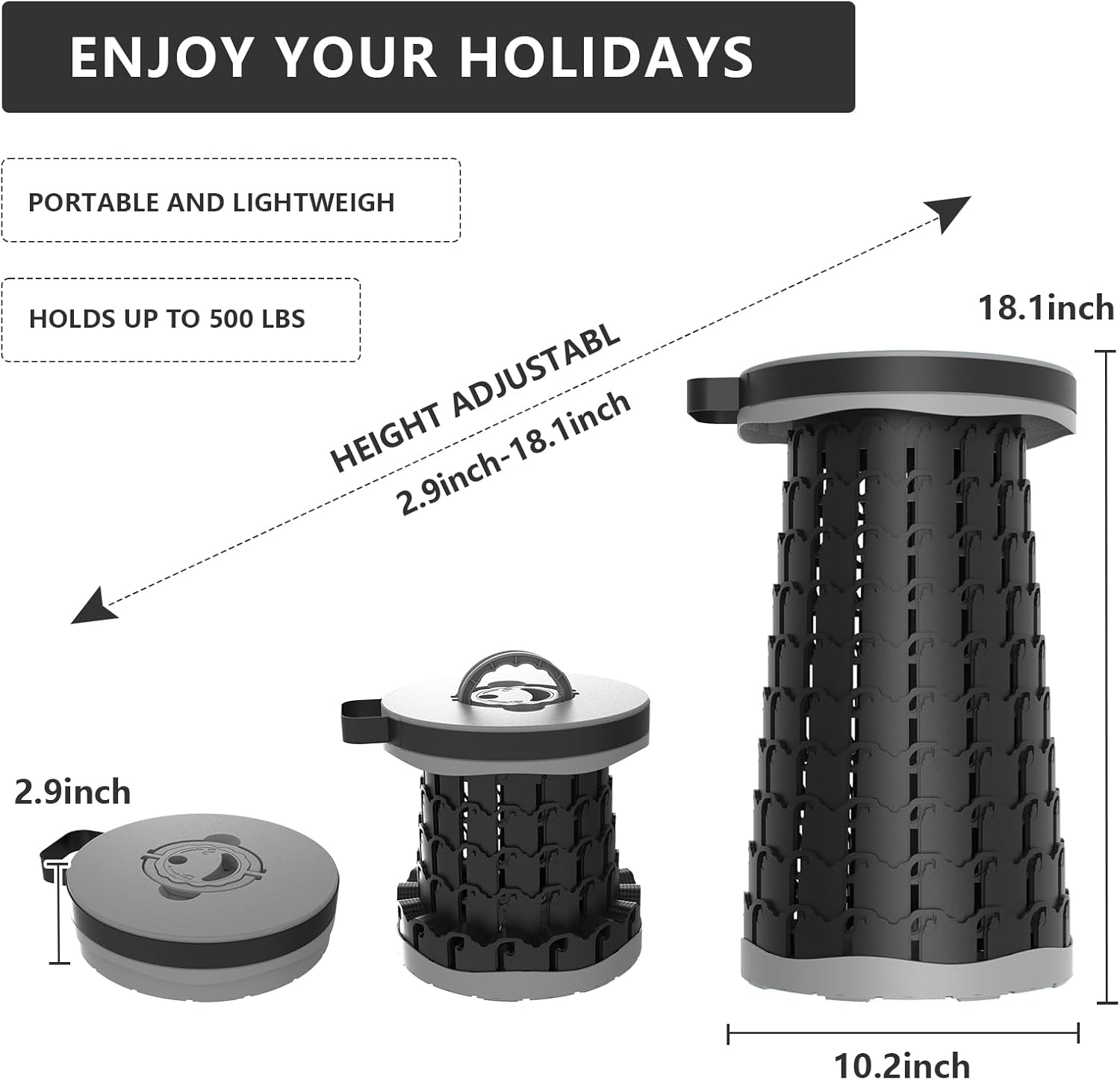 Upgraded Collapsible Stool with Max Load Capacity 330lbs Portable Telescoping & Folding Design Retractable Seat for Camping, Gardening, Fishing & Outdoor Adventures (Grey)