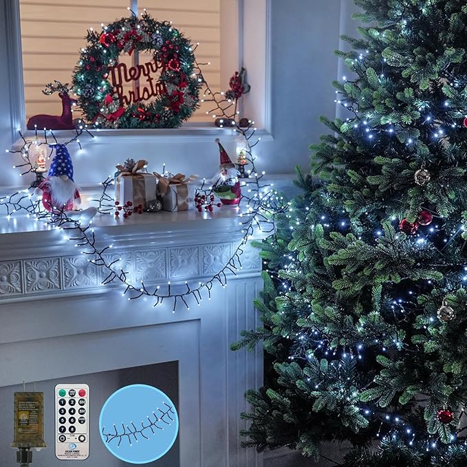 - 【Timer & Memory Features】: Our Christmas cluster lights feature handy timer settings and a memory function. The timer lets the lights turn on automatically, no more forgetting to switch them off, saving energy and hassle. Meanwhile, the memory function keeps track of your last brightness and mode settings, so when you decorate your tree or wreath next time, they’ll light up exactly as you left them. This makes setup quick and easy, helping create a consistently warm and cozy holiday vibe. Perfect for hassle-free Christmas decorating, these practical features add convenience without the fuss.