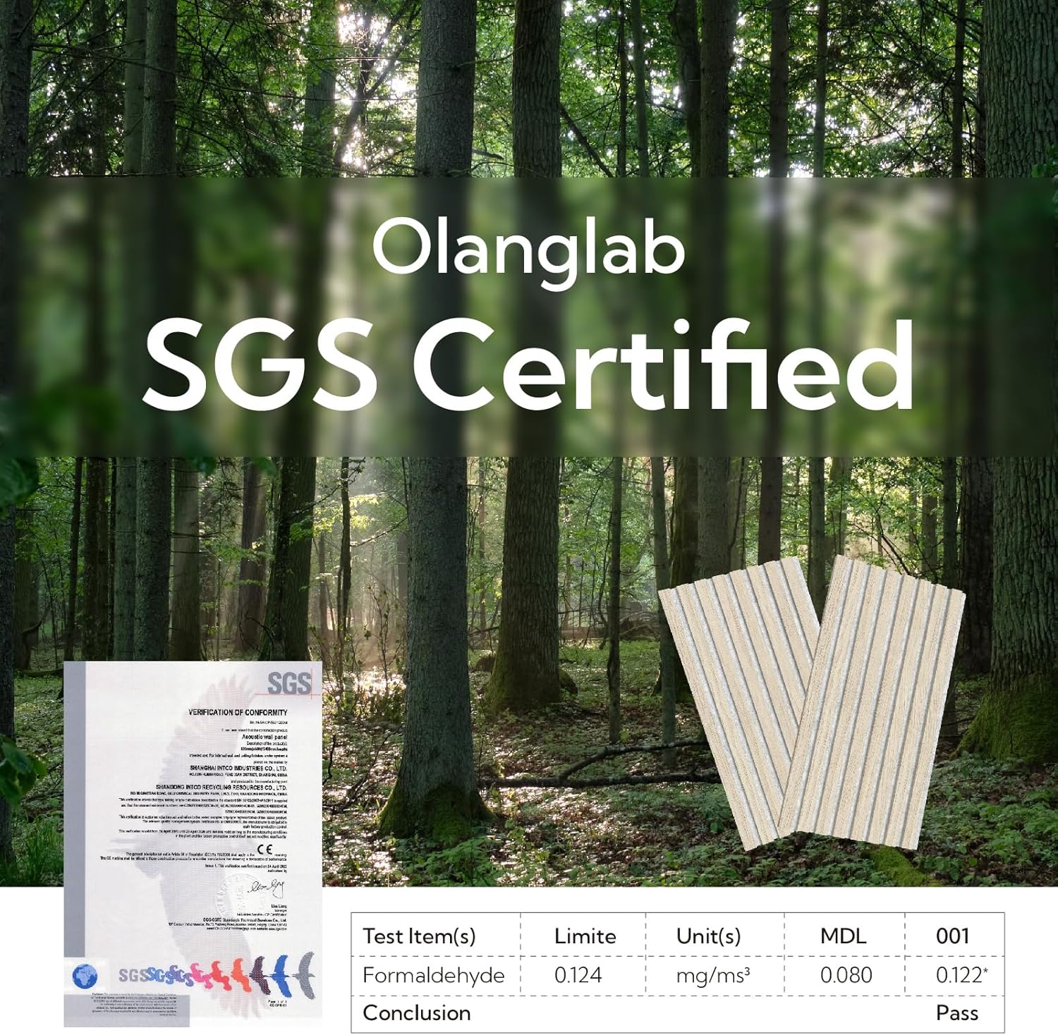 - Recyclable Material: Olanglab wood 3D wall panels consist of MDF slats and acoustic felt backing, they are made of recyclable and reusable materials that contribute to promoting sustainability.