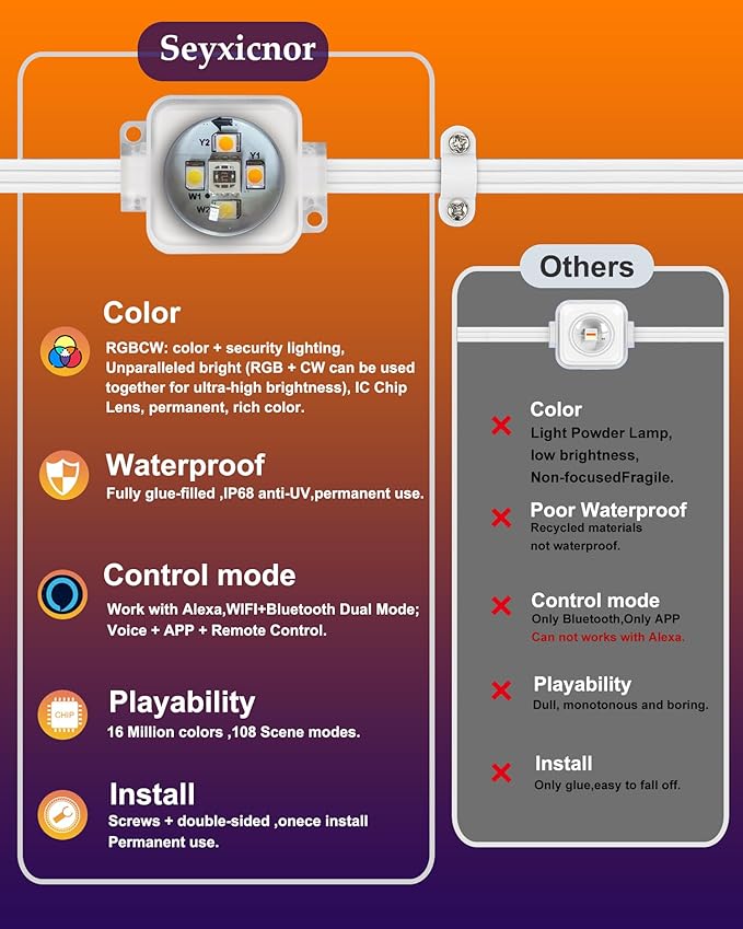 - Special Feature : Google Amazon Smart Voice Control, Higher density lamp beads, IP68 full glue filling for permanent use, RGBCW light source design, Wall washing lens design Google Amazon Smart Voice Control, Higher density lamp beads, IP68 full glue filling for permanent use, RGBCW light source design, Wall washing lens design