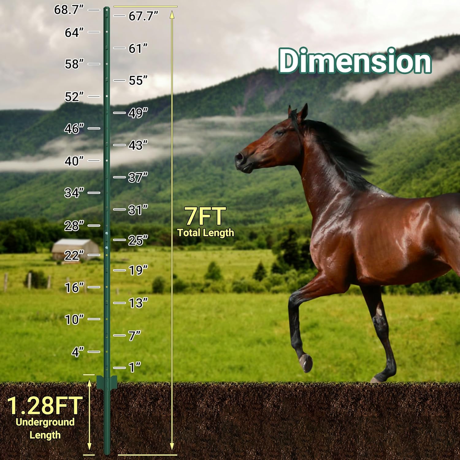 - What You Will Get: 16 pack of green metal fence stakes for wire fencing; Total height of each fence post is 7 ft, with 1 ft under the ground, great for 6 ft welded wire, hardware cloth, steel wire, ropes and other utility fence