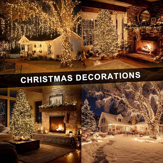 Dazzle Bright Christmas String Lights, 600 LED 196 FT Waterproof Green Wire String Lights with 8 Lighting Modes Timer, Christmas Decorations Outdoor for Party Yard Garden Xmas Tree Decor, Warm White