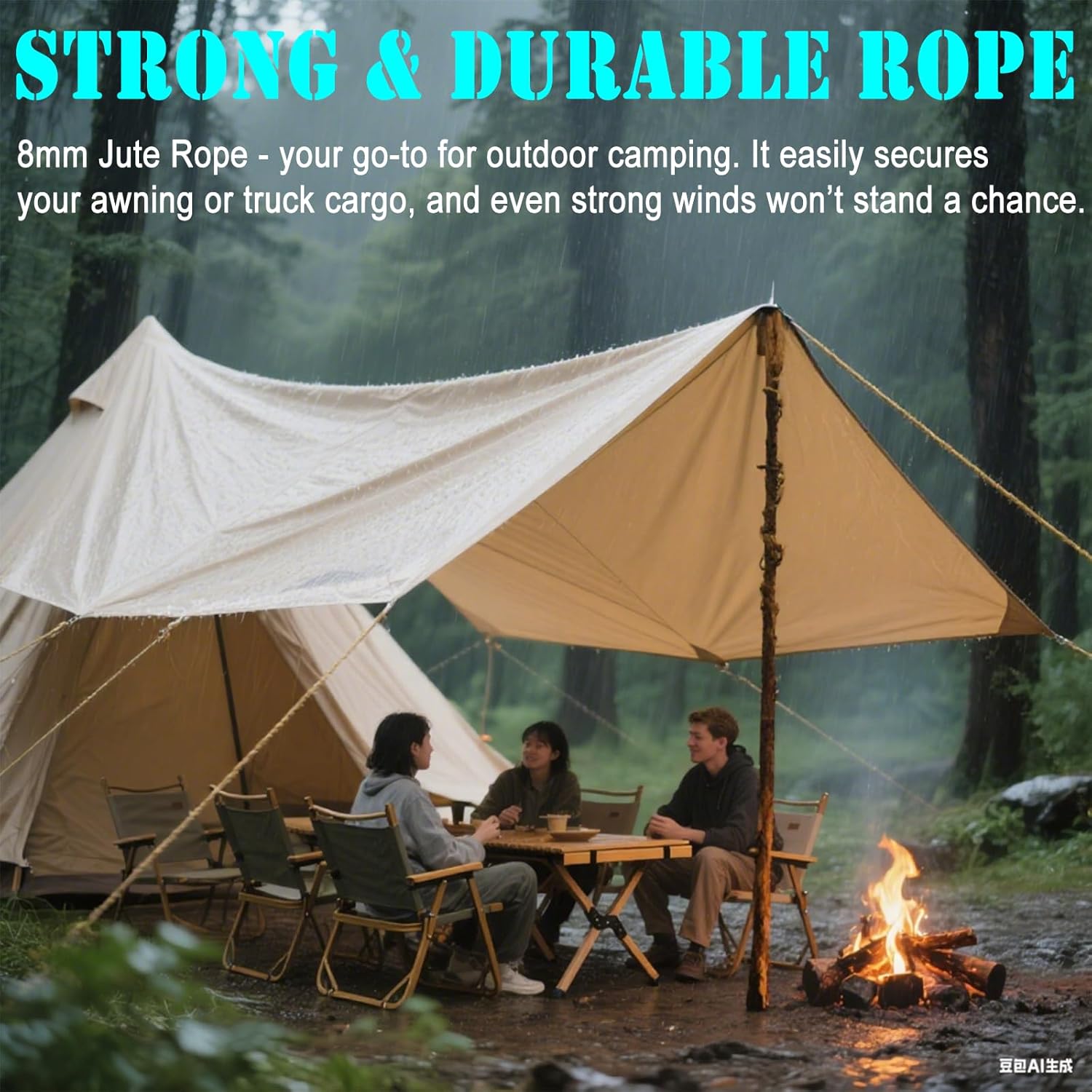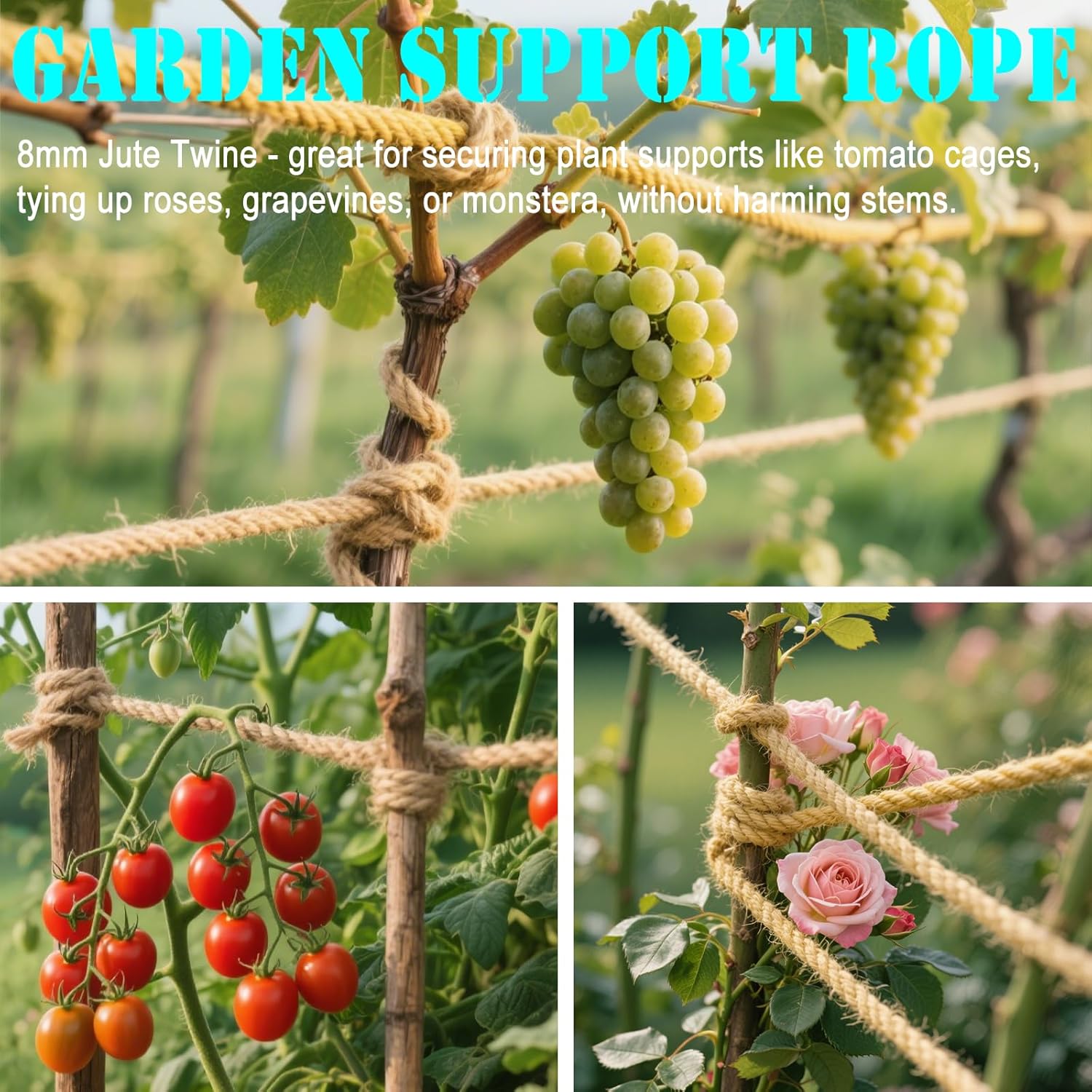 8mm Jute Twine Rope - 164ft Heavy Duty Natural Jute String for Gardening, Crafts, Packaging, DIY Projects & More - Strong, Durable & Biodegradable - Perfect for Plant Tying, Home Decor & Outdoor Use