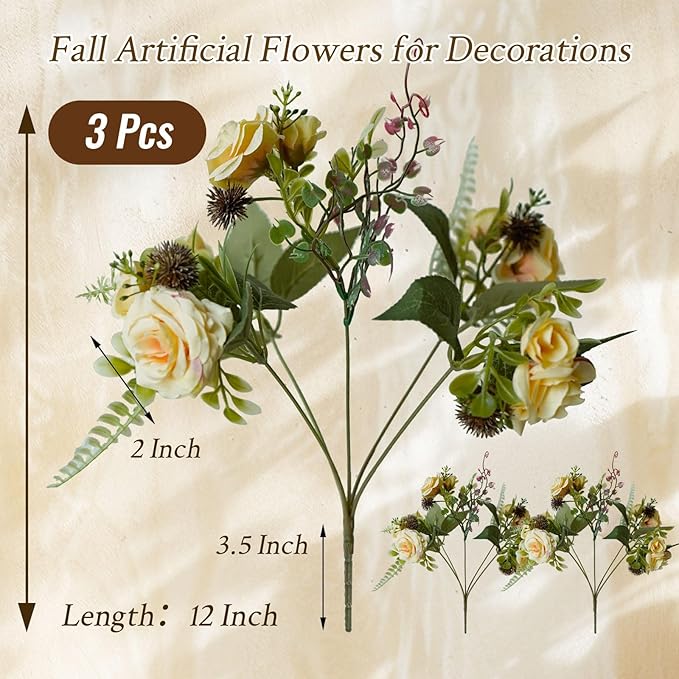 - Note: This set of fall flower bouquets includes three long bouquets . The silk flowers may be squeezed and deformed during transportation, but the flowers head will be restored after being placed. We believe it will become more beautiful through your arrangement.