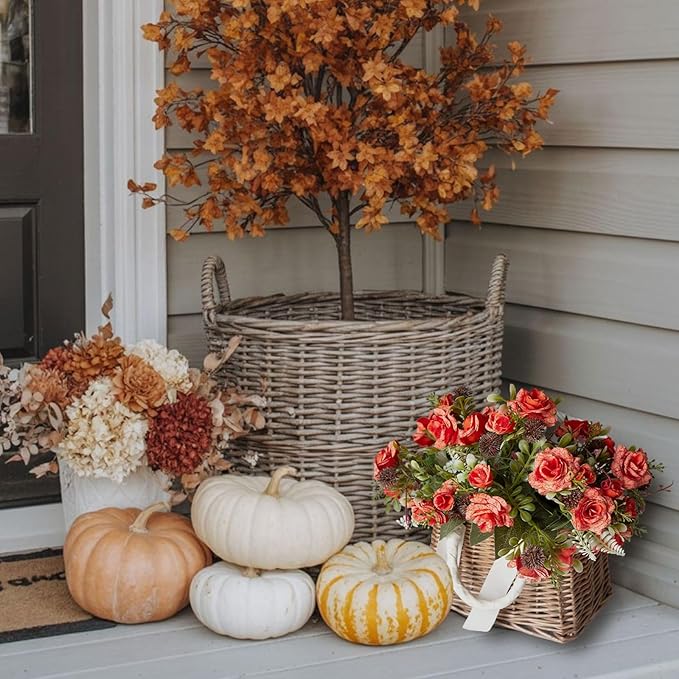 - Easy Maintenance: These fall floral bouquets are durable and UV resistant. Very suitable for the home decoration without worrying about wilt and fade. Even without water and sunshine, they can still stay beauty and vigor. And don't need to spend extra time to take care of them, and they are convenient for cleaning and easy to arrangement.