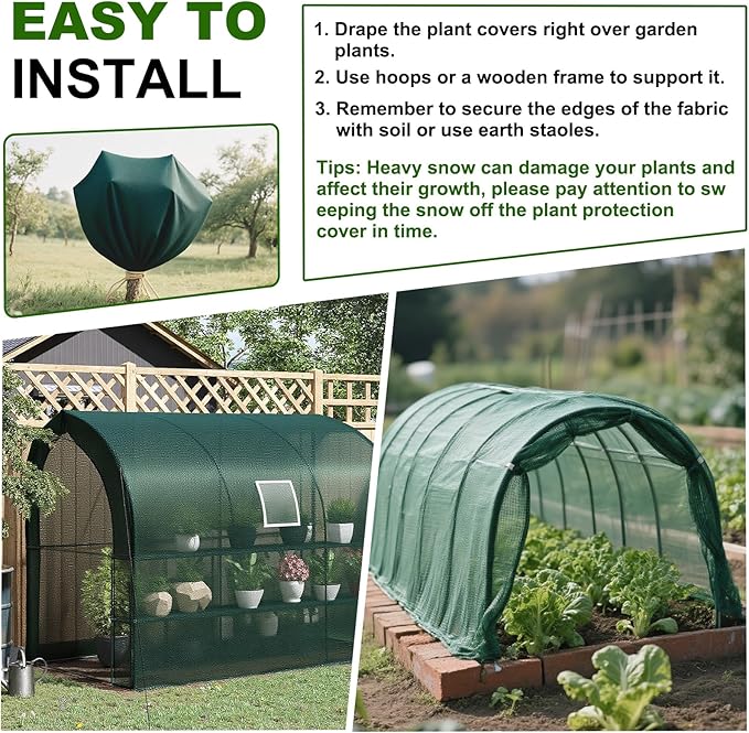 - Multi-Purpose Garden Cover: Not just for frost protection! Use it as a sunshade to block excess heat, or as a barrier against birds, insects, and small animals. Versatile and reusable, this row cover adapts to your year-round gardening needs.