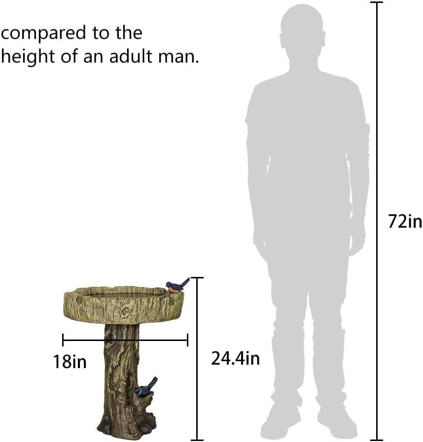 24.4" H Trunk Shape Birdbaths for Outdoors, 24.4" H * 18" Φ Garden Bird Bath Statues, Outdoor Decor for Garden, Patio, Yard, Deck