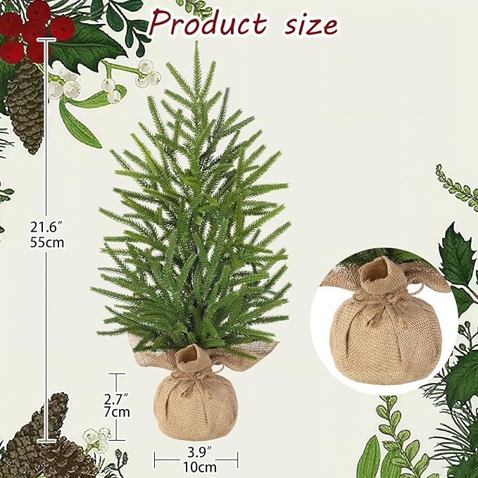 - Exquisitely Realistic Design: Crafted from premium materials, this mini Christmas tree flaunts lush green branches that authentically mirror the natural beauty of a real fir. Each branch is meticulously shaped to create a full, lifelike silhouette. Paired with a charming burlap base, it instantly becomes a captivating focal point for your holiday decor, infusing spaces with authentic forest - inspired charm.