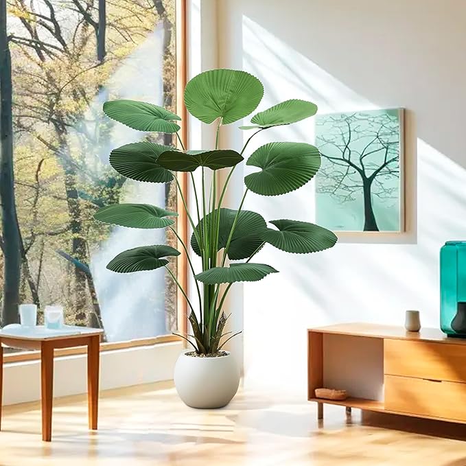 - 🌴 Exclusive Round-Leaf Fan Shape Design: Discover the unique beauty of our fake palm tree, featuring distinctive round leaves rarely found in other faux trees. FSOHOI fake plant innovative design offers a fresh, contemporary take on tropical decor, creating an instant conversation piece in your home or office