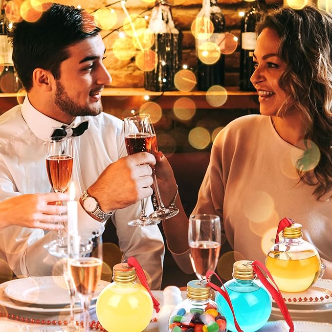 - Product Information: the package provides you 18 pieces fillable Christmas baubles featuring classic color secure screw-top lids with ribbons for hanging on the top, fill them with anything from gin to whiskey to sweets, will be better way to keep your alcohol nearby over the festive period than by hanging it on your tree
