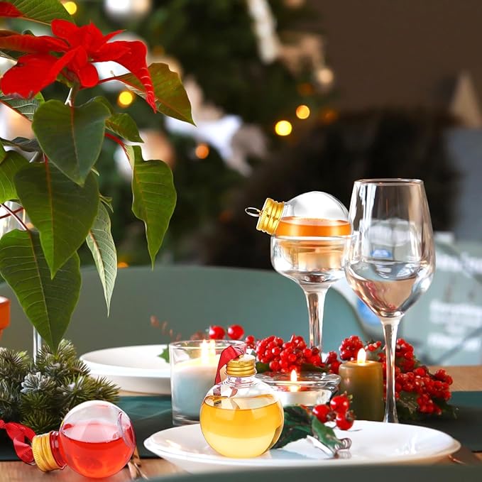 - Pretty Holiday Decorations: these festive clear round shaped balls are just what you need to get into the spirit of Christmas, let you and your family members or friends have a memorable holiday, ideal for serving up shots of much needed drinks at all our of control Christmas parties