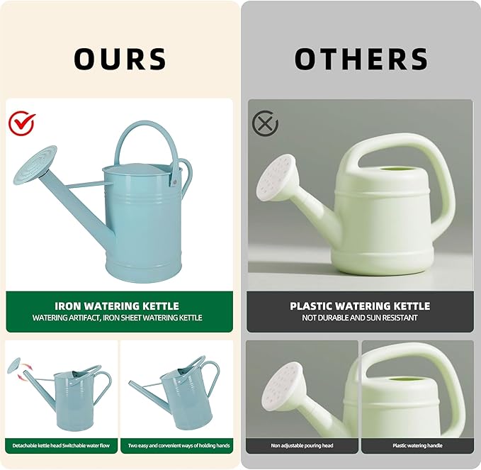 - Durable: Metal watering cans are made of high quality galvanized steel, which is strong and durable and will last for years without deformation or rust, thick galvanized steel ensures our watering cans are leak-proof
