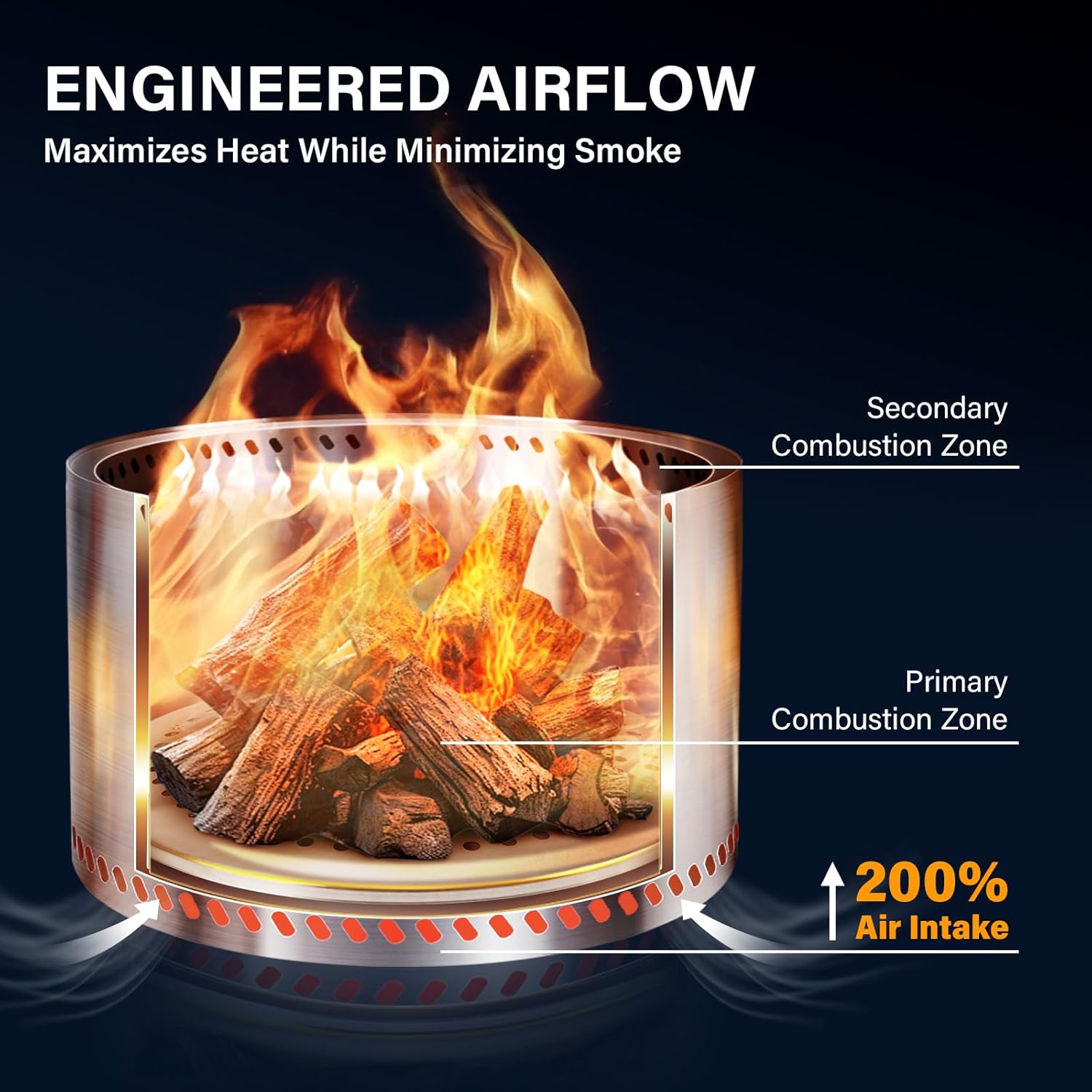 - Smokeless Fire Pit with Built-in Grill: Revolutionary 360° airflow technology eliminates smoke while the integrated grill grate transforms your fire pit into a versatile outdoor cooking station for BBQ, grilling, and bonfire entertainment