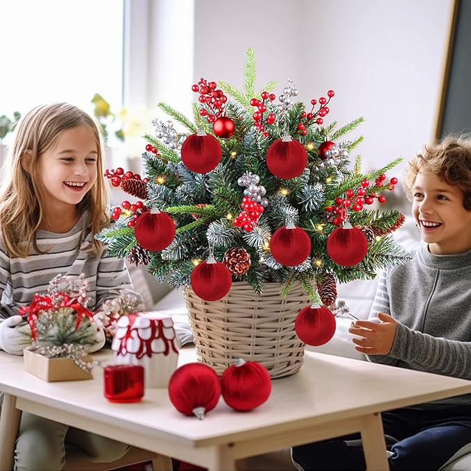 Woration 9pcs Red Velvet Christmas Hanging Ornaments Balls Set 2.36inch Garlands Xmas Tree DIY Decoration Hanging Plastic Balls for Holiday Wedding