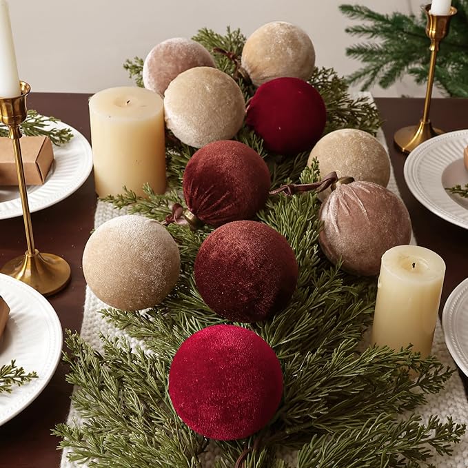 - SUPER VALUE SET: The Christmas ornament set comes with 16 large and elegant velvet tree ornaments in burgundy red, beige, dark and light brown. Each ornament measures 3.15 inches in diameter, providing ample quantity and size to give your Christmas decor a warm and aesthetic appearance.
