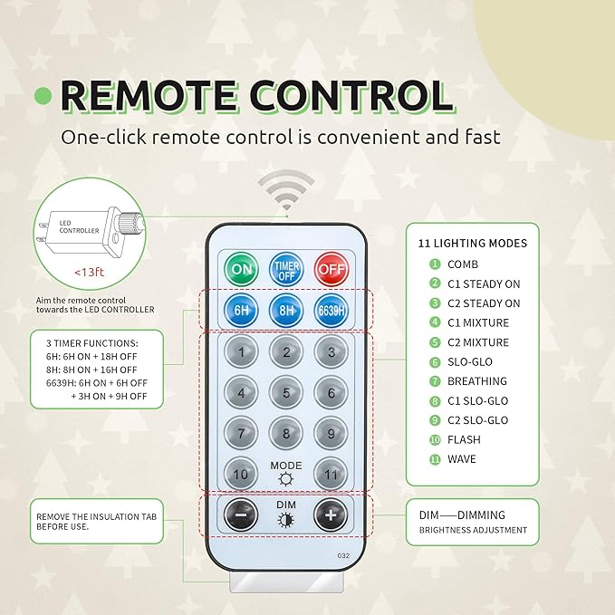 - Brighten Every Moment with a Click: This Christmas tree features 450 LED lights and includes a remote to control 2 color settings (warm white & multi-colored) and 11 lighting modes, all from up to 13 feet away to create the ideal vibe