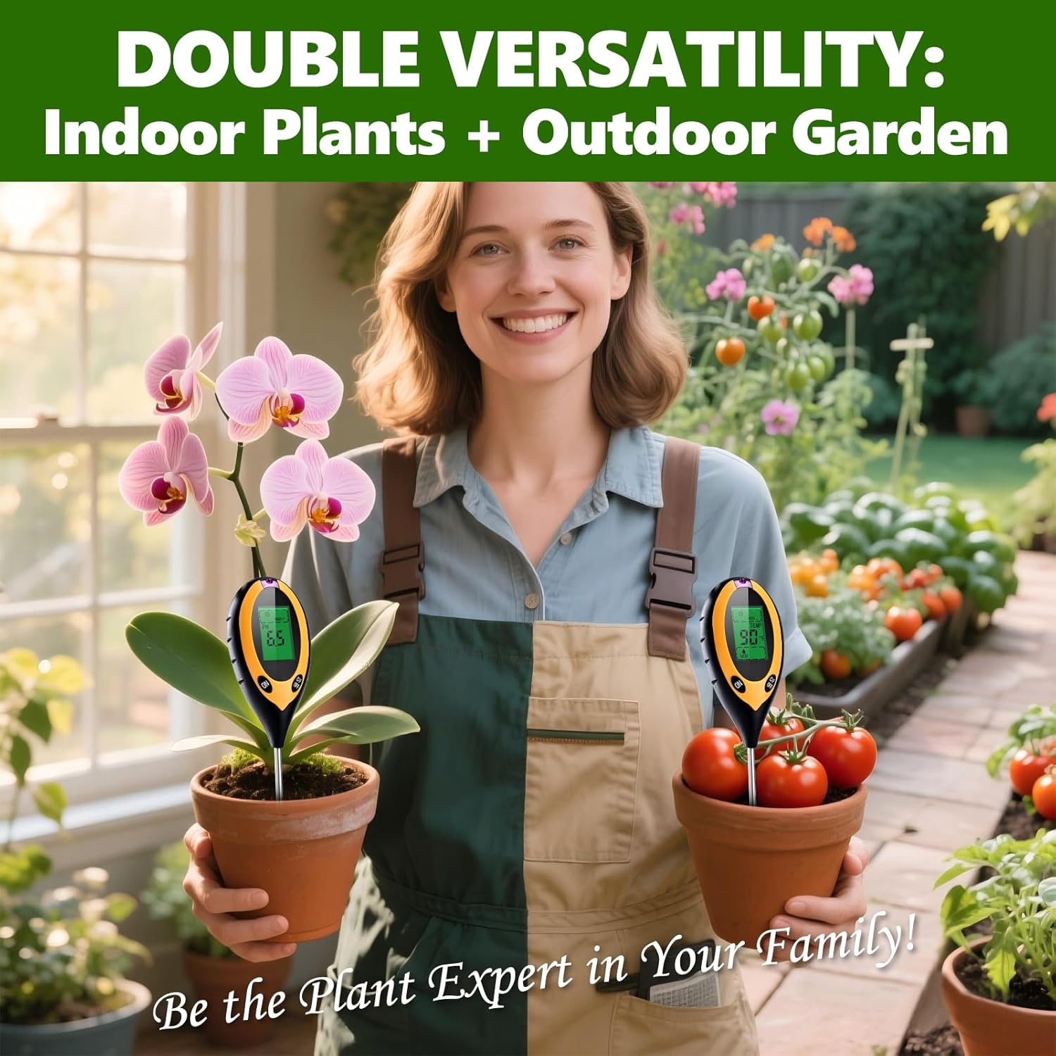 - 【2 PACK + 4-IN-1 MULTIFUNCTIONAL】Get double value with two premium 4 in 1 soil ph tester digital! One for indoor plants, another for outdoor plants. Each unit accurately measures soil pH, Moisture, Temperature & Sunlight - perfect for monitoring multiple garden areas or sharing with a friend.