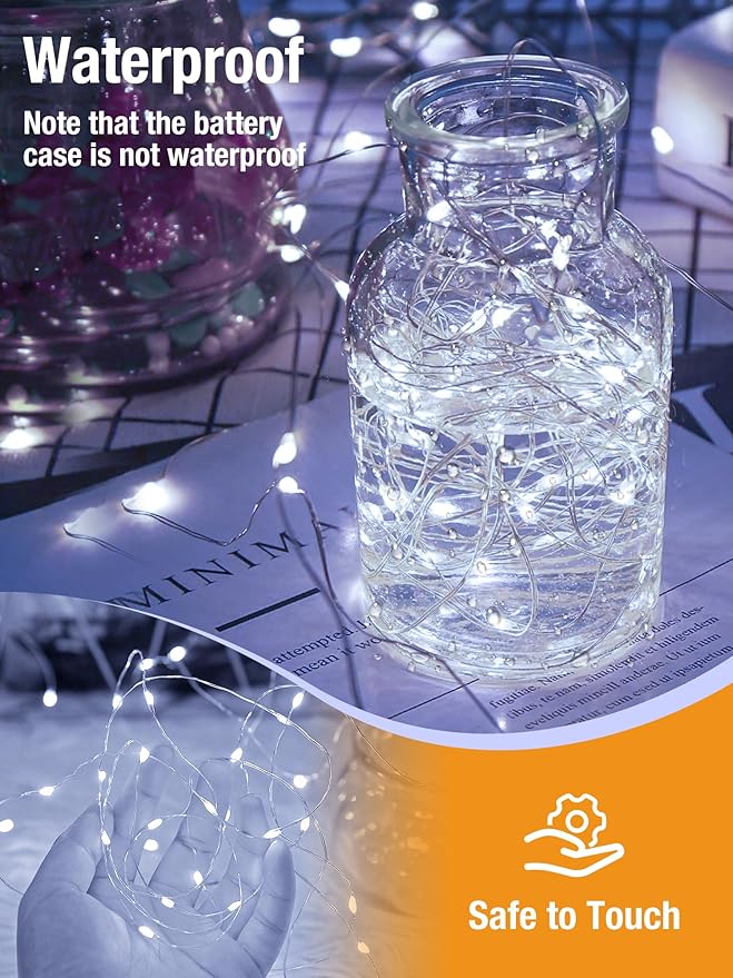 - Portable Waterproof Design: The battery powered string lights are waterproof, suitable for indoor and outdoor use. However, please note that the battery box compartment is not waterproof. The battery box is compact and easy to carry. Low-voltage ensures the light chain remains safe to touch even after prolonged use, making it safe for use in environments with infants or pets