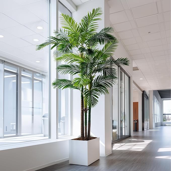 - Wire-core fronds let you bend, curve, and arrange each leaf to mimic a live palm’s organic, swaying posture. The dual-trunk design adds depth, while the hand-tied fiber crownshaft replicates the growth pattern of mature phoenix palms.The rust-proof metal frame within the trunk and leaves ensures structural integrity for years, making this a durable.Internal steel-reinforced trunks,supports outdoor wind/indoor repositioning.Safe for patios, poolside, or commercial spaces.