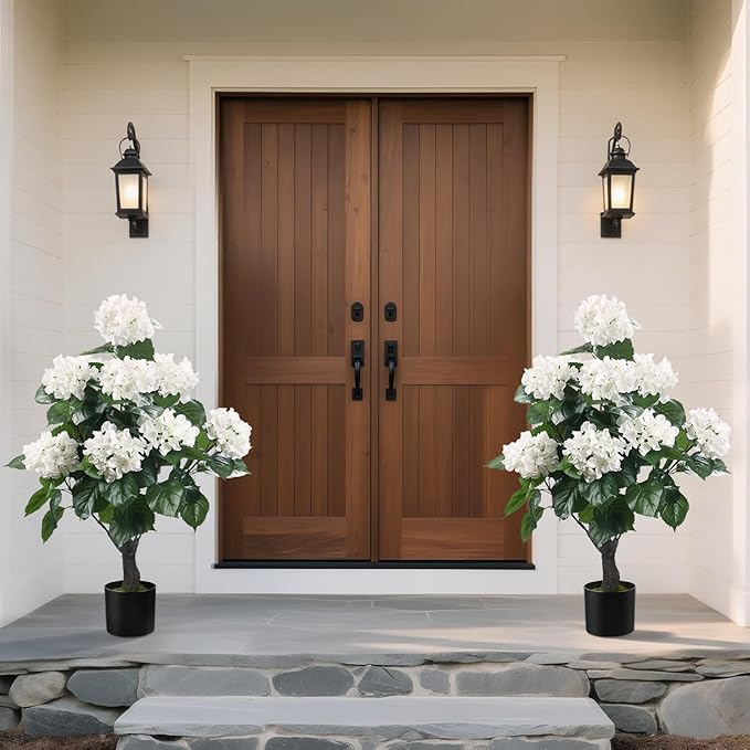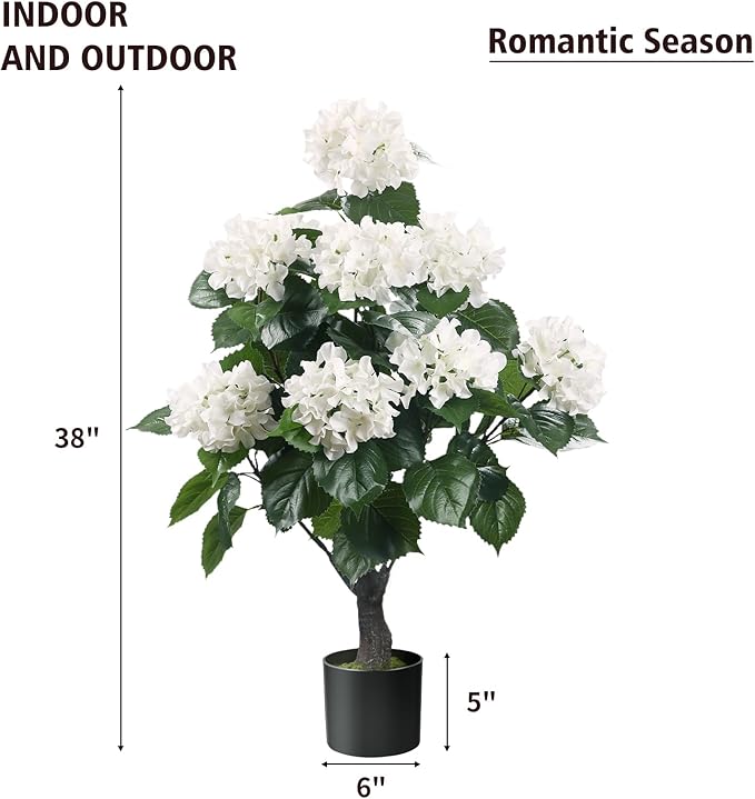 - Realistic Hydrangea Design – Standing 38 inches tall, this artificial hydrangea tree features lush silk flowers and vibrant green leaves, offering a natural and elegant look without the need for watering or pruning.