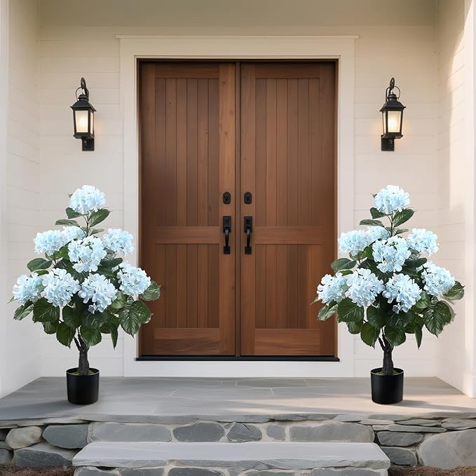 - Realistic Hydrangea Design – Standing 38 inches tall, this artificial hydrangea tree features lush silk flowers and vibrant green leaves, offering a natural and elegant look without the need for watering or pruning.