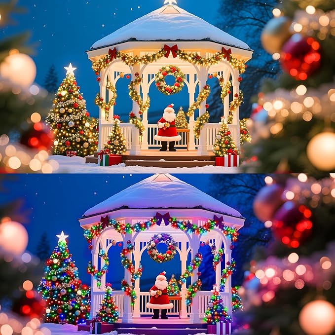 - WIDELY USED AND INDOOR AND OUTDOOR DECORATION: LED Christmas string lights are versatile and suitable for bedrooms, classrooms, terraces, gardens, patios, lawns, Christmas trees and more. Outdoor Christmas lights use super high intensity LED to create soft and bright lights, you can also stick them on the wall and clip photos to turn it into a photo wall.