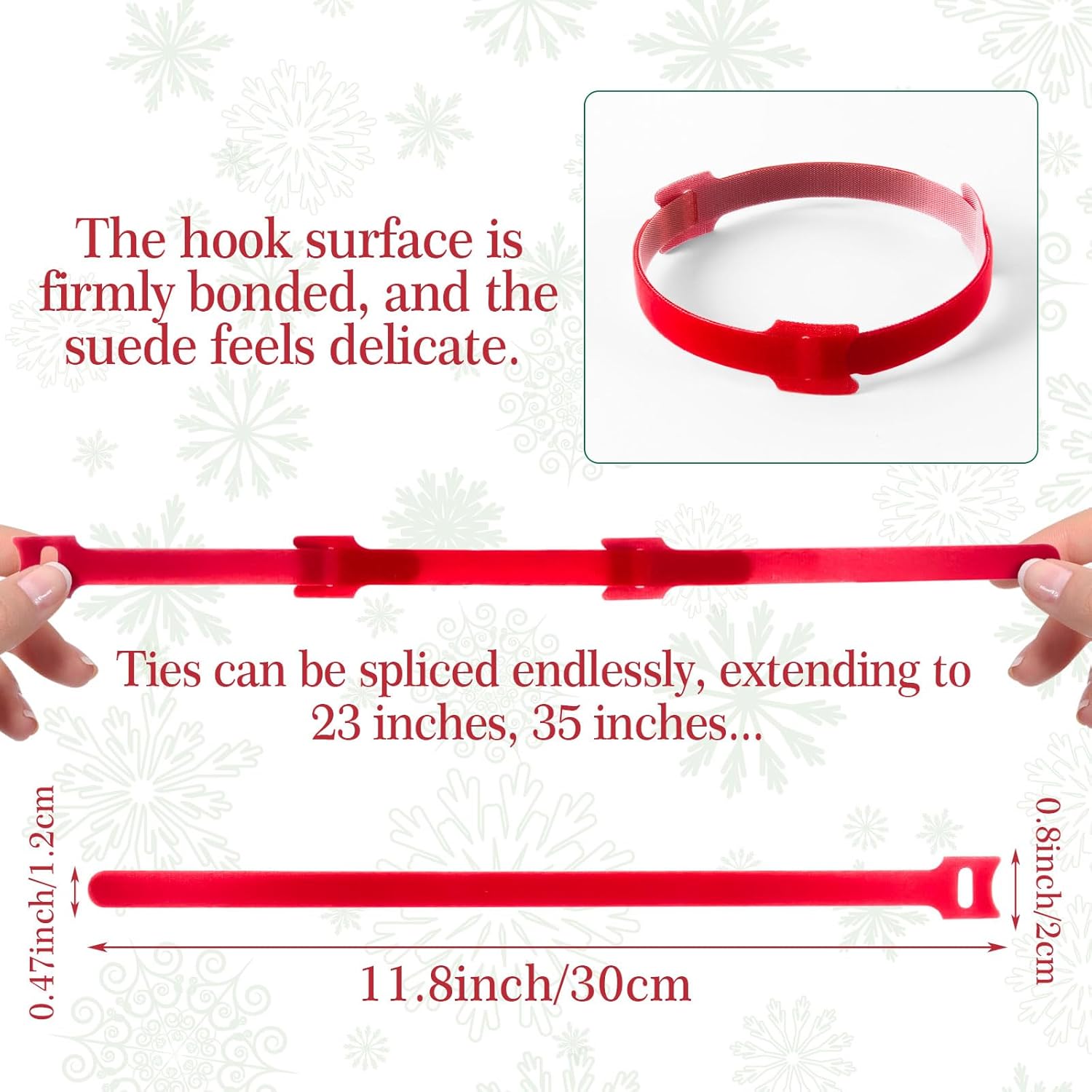 - Sufficient Quantity: This set contains 100 red Christmas garland ties, each with a length of 12 inches (30 cm) and a width of 12 mm. The quantity is abundant and specially designed for Christmas decoration, which can easily meet the decoration needs of homes, shopping malls or activities. Whether it is tying Christmas trees, fixing garlands, hanging colored lights, or decorating stairs, the quantity is sufficient and can be freely cut and spliced