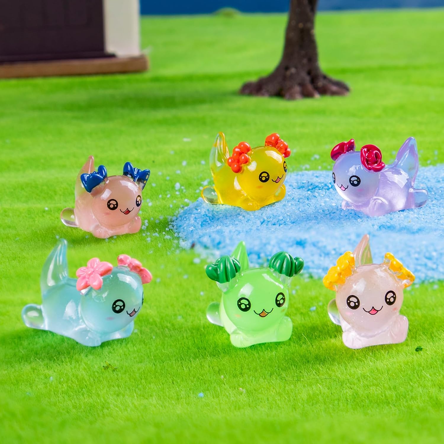 - 【You will get】: 60 mini resin colored axolotl with flowes set,There are 6 style , each with 10 pieces,They have a uniquely cute design and are housed in a portable box
