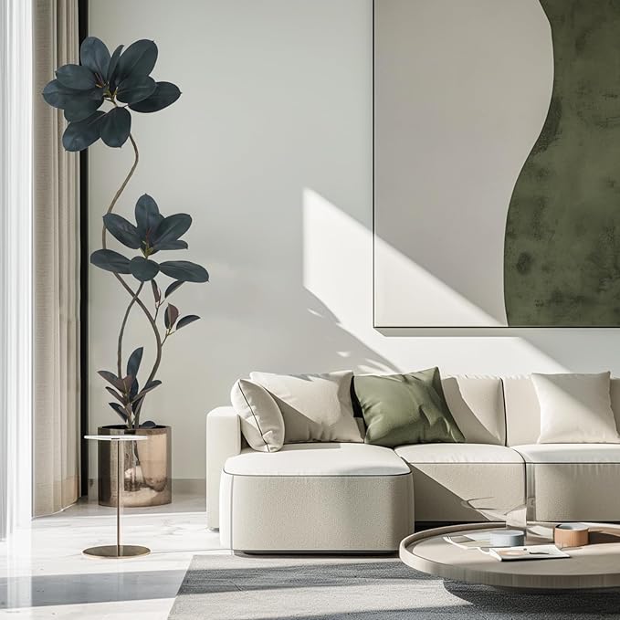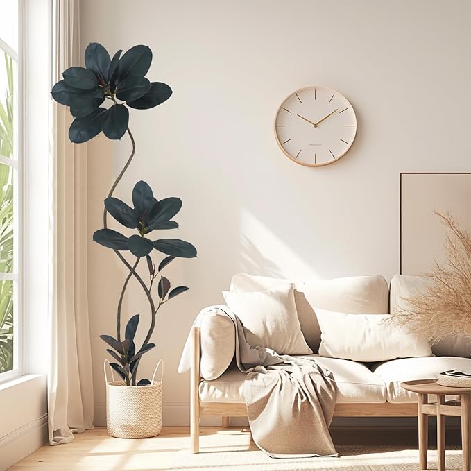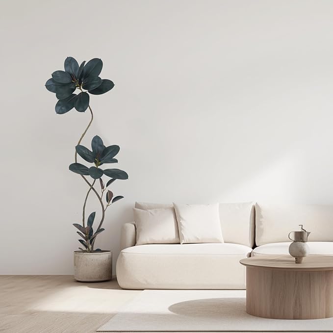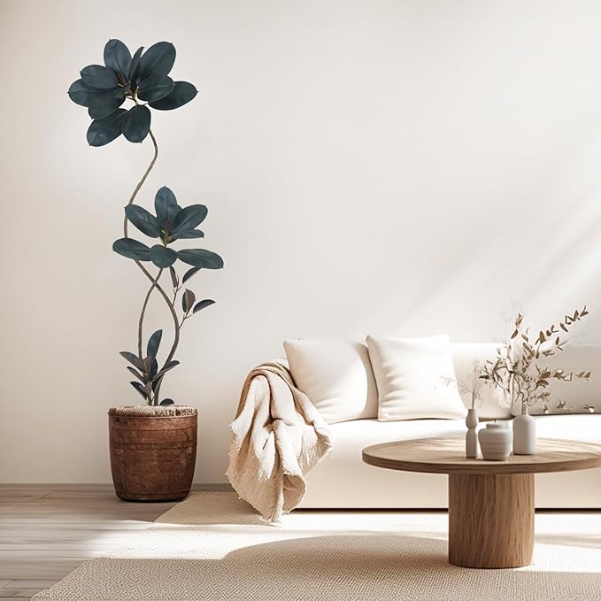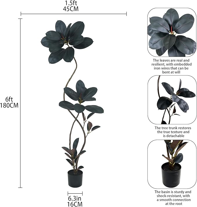 - REALISTIC DESIGN: Features lifelike dark green rubber tree leaves arranged on natural-looking branches for authentic appeal