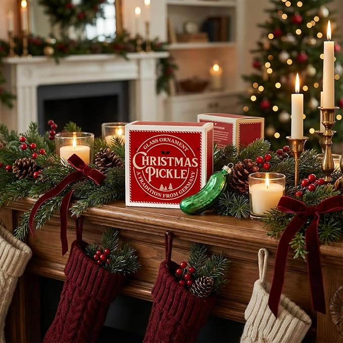 - A timeless holiday tradition – Bring the magic of the German Christmas pickle legend into your home. This hand-blown green glass pickle ornament is designed to become a beloved family keepsake, hung on the tree Christmas Eve.