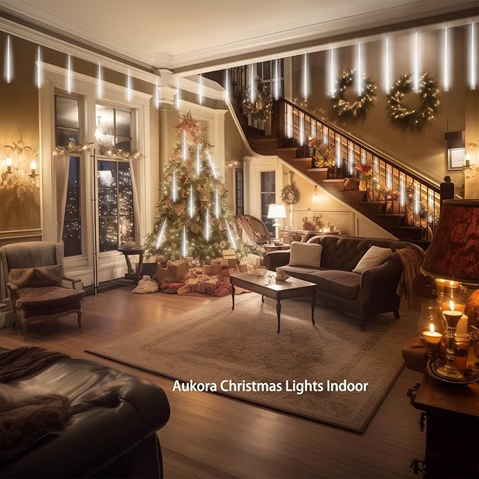 - 24 Tubes Meteor Shower Lights: 24-tubes Christmas lights outside have 24 tubes and 576 LEDs(equivalent to 3 sets of 8-tube), Adopted super bright LED chips, providing 360 degree shining angles with white lights. There is no need for multiple sets to be connected in series, reducing the operation steps and achieving a safer and more effective installation