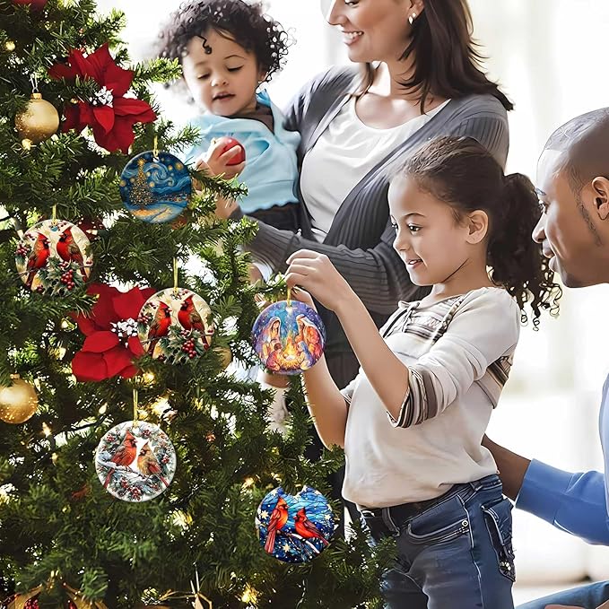Nativity Night Ornaments Nativity Scene Round Ceramic Watercolor Birth of Jesus Christ Hanging Ornament Christmas Keepsake Decor for Xmas Tree Winter Holiday Xmas Gift for Women Men 3"