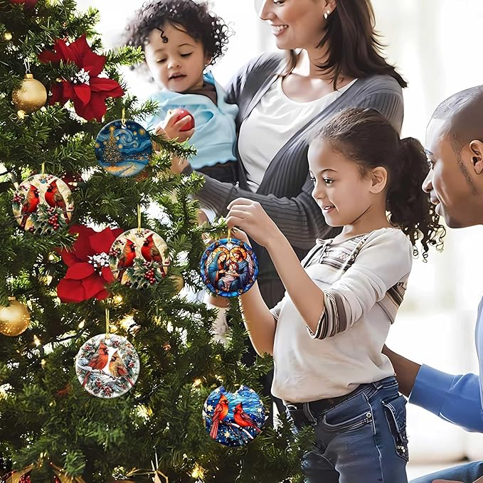 Nativity Scene Ornaments Nativity Night Round Ceramic Stained Glass Style Birth of Jesus Christ Hanging Ornament Christmas Keepsake Decor for Xmas Tree Winter Holiday Xmas Gift for Women Men 3"