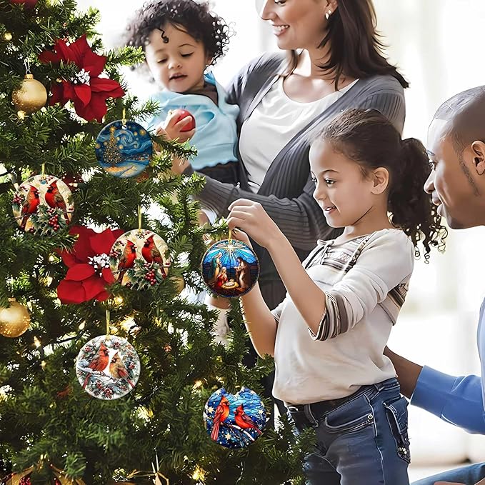Nativity Night Ornaments Round Ceramic Stained Glass Style Birth of Jesus Christ Hanging Ornament Christmas Keepsake Decor for Xmas Tree Winter Holiday Xmas Gift for Women Men 3"