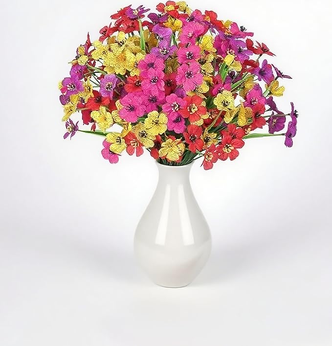 - Durable & UV Resistant – Made from high-quality silk and plastic materials that are UV-resistant, these artificial flowers stay bright and beautiful whether placed indoors or outdoors, rain or shine.