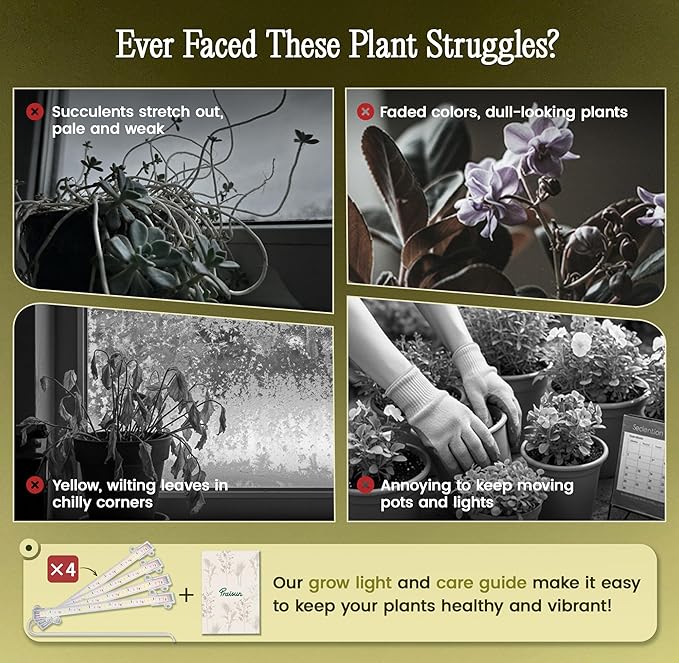 - 【Full-Spectrum LED Grow Lights】No more moving your plants around to chase the sunlight! This indoor plant stand comes with 4 energy-efficient LED grow lights that keep your plants happy year-round. Choose from 3 timer settings (3/9/12H) and 10 brightness levels to match each plant’s needs. With 3 light modes — Full Spectrum (natural sunlight), Red & Blue, and Mixed — you can support every stage of growth, from seedlings to blooming