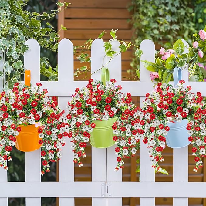 - Ultra-Realistic UV-Resistant Artificial Flowers for Outdoor Hanging Baskets:Crafted with premium fade-proof silk, these lifelike artificial flowers and greenery withstand intense sun, rain, and snow without fading. Expertly designed for outdoor hanging baskets, porch planters, garden fences, and deck railings where vibrant, full-coverage displays matter most throughout all four seasons. Their elegance also brings lasting, zero-maintenance beauty to indoor sunrooms and bathrooms.