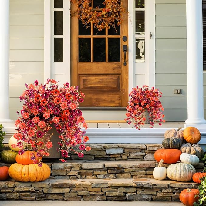 - Versatile Cascading Designs for Pergolas, Balconies & Outdoor Walls:Create breathtaking, professional-grade curb appeal with our beautifully draping cascading artificial flowers. Designed for outdoor hanging baskets, balcony railings, pergola accents, and window boxes to transform any exterior space in spring, summer, fall, and winter. You can easily repurpose these stunning arrangements indoors for wedding backdrops, holiday mantels, or party decor without sacrificing durability.