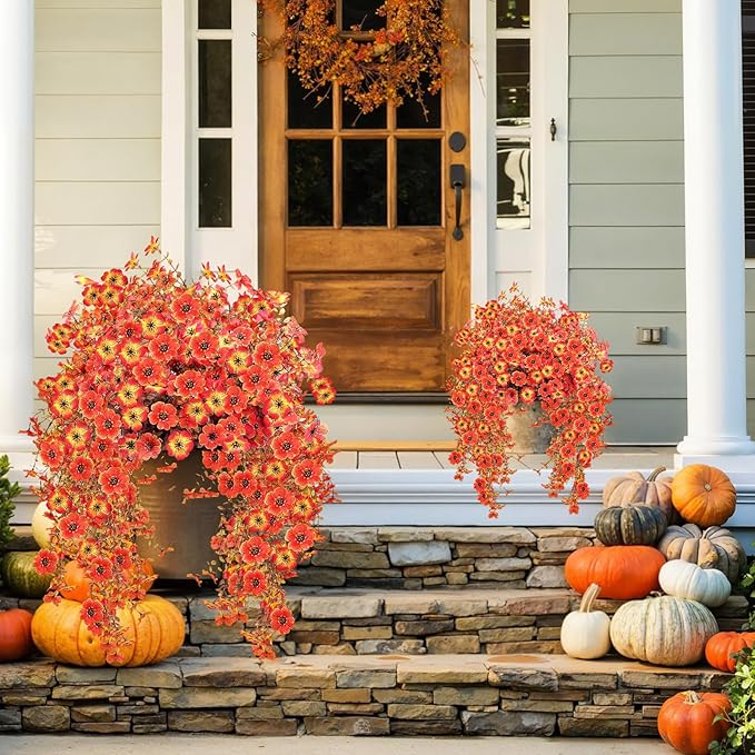 - Versatile Cascading Designs for Pergolas, Balconies & Outdoor Walls:Create breathtaking, professional-grade curb appeal with our beautifully draping cascading artificial flowers. Designed for outdoor hanging baskets, balcony railings, pergola accents, and window boxes to transform any exterior space in spring, summer, fall, and winter. You can easily repurpose these stunning arrangements indoors for wedding backdrops, holiday mantels, or party decor without sacrificing durability.