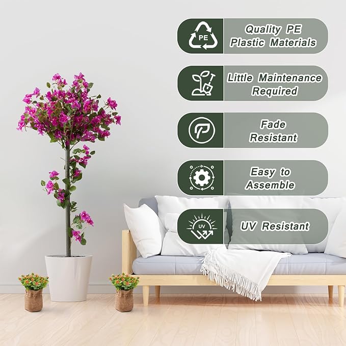 - 【VERSATILE DESIGN】Push stems of trees artificial outdoor directly into garden soil, or place artificial outdoor plants in pots for instant landscaping. Ideal for creating outdoor plants artificial for porch displays or blending faux bougainvillea tree with real greenery.