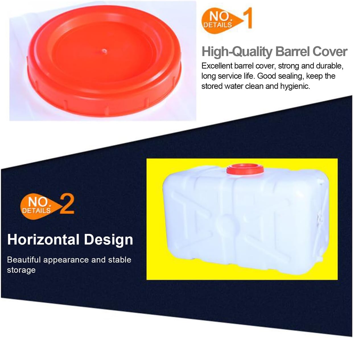- Material: The water container is made of high-density polyethylene, which has super strong resistance to drop and pressure, is more resistant to acid and alkali, anti-aging, has strong toughness, is not easy to deform, and is durable.