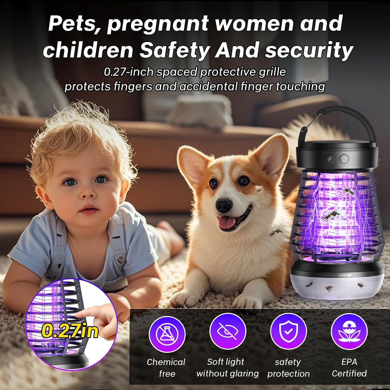 - 【Warm Light & Purple Light, 3 in 1】This portable exterminator is a powerhouse of functionality, designed to not only eliminate pesky bugs but also provide desk lamp-level lighting. Whether you're at home or out camping, it effectively keeps flying insects at bay while doubling as a reliable camping light.