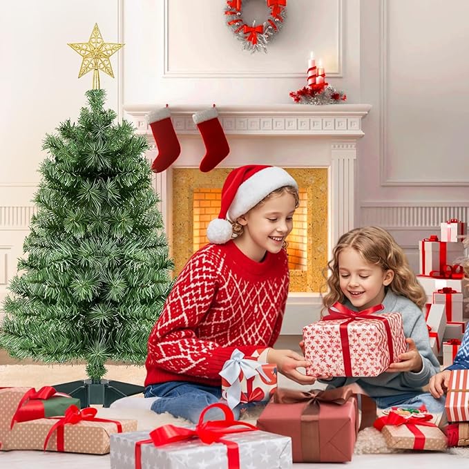 - 【Elegant & Realistic Design】:This Christmas tree comes pre-decorated with an elegant gold star tree topper, offering a complete holiday look right out of the box.Tabletop Christmas trees feature lifelike branch tips and dense foliage, creating a realistic pine tree appearance that’s ready for your favorite extra ornaments or fairy lights.