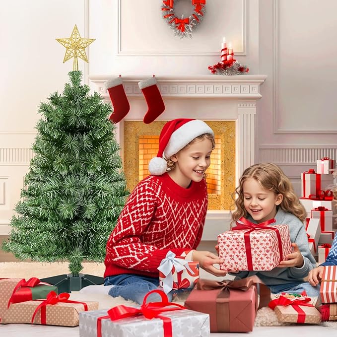 - 【Elegant & Realistic Design】:Christmas tree comes pre-decorated with an elegant gold star tree topper, offering a complete holiday look right out of the box. This tabletop Christmas tree features lifelike branch tips and dense foliage, creating a realistic pine tree appearance that’s ready for your favorite extra ornaments or fairy lights.